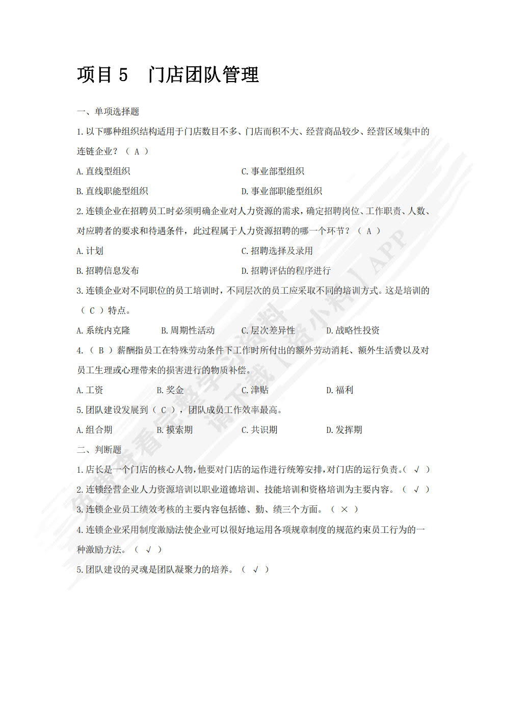 连锁门店店长管理实务时应峰 方芳课后习题答案解析